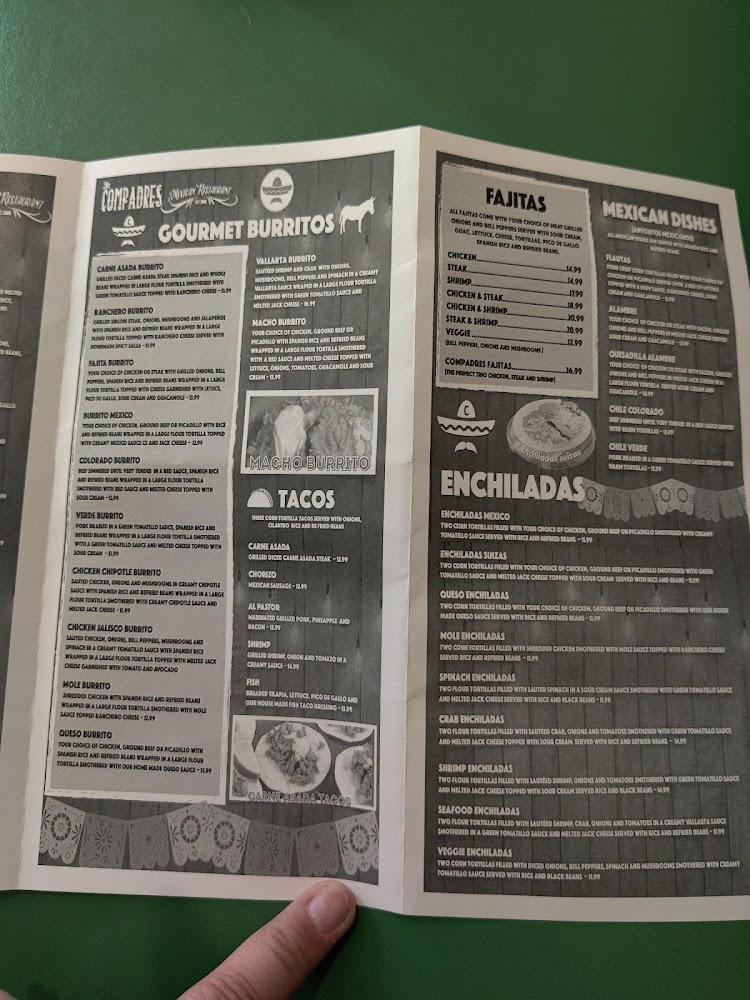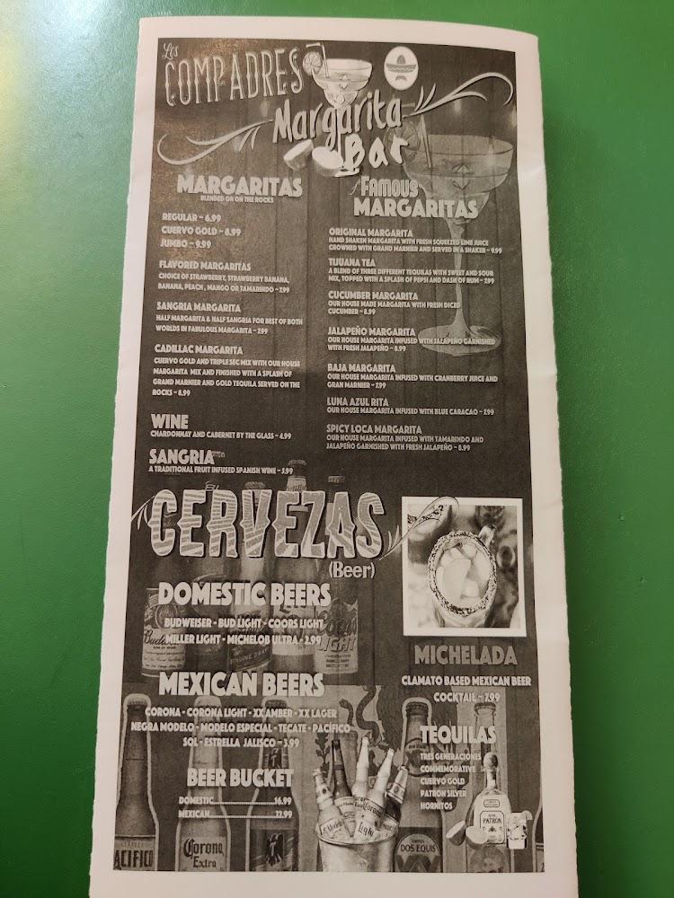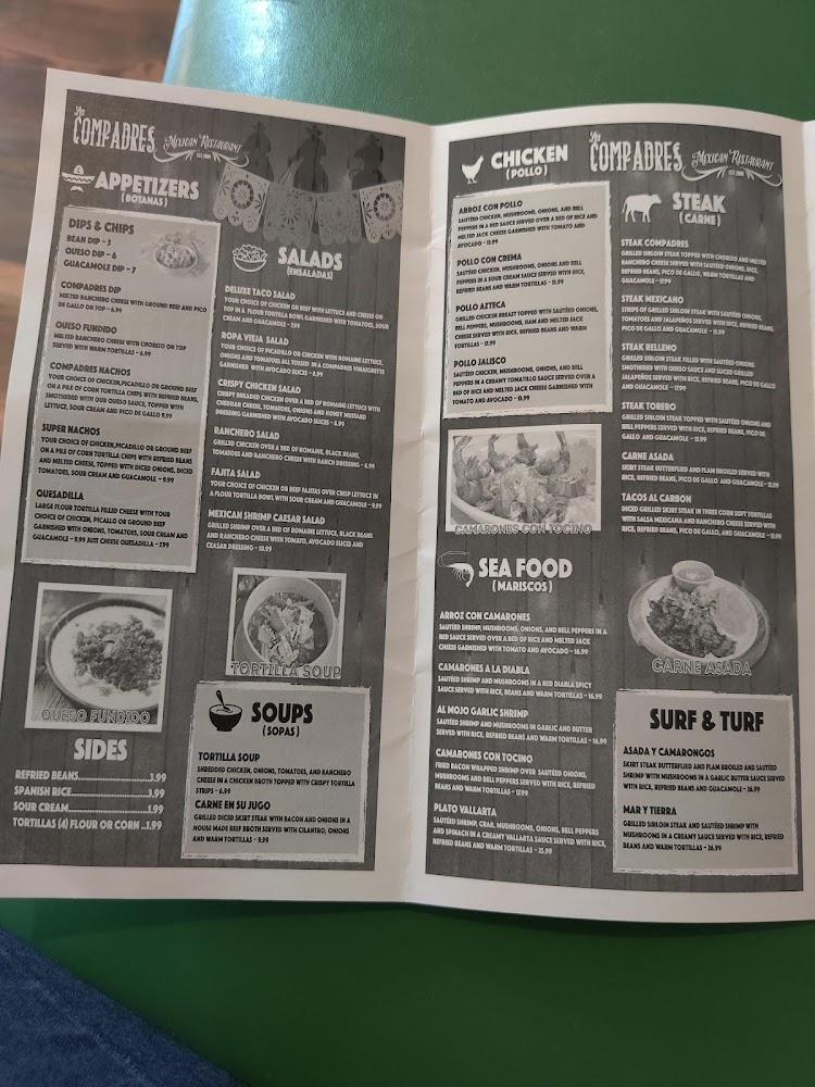 The menu at Los Compadres offers a wide selection of Mexican dishes. Highlights include burritos, tacos, enchiladas, and fajitas, all made from fresh ingredients. Guests can also enjoy lighter options like salads and soups.